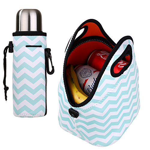 Kaptron Neoprene Lunch Bag, Thick insulated Lunch Tote Lunch Box Bag with Shoulder Straps and Bottle