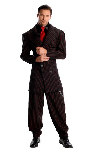 -. Binding : Apparel -. Brand : Rubie's -. Department : mens -. Feature : Pinstripe jacket, pants and shirtfront with tie / Complete costume kit in one package / Search for the red sequin flapper from rubies for a fun couples costume / Hand wash and lay flat to dry / Rubie's costume company has been bringing costumes and accessories to the world since 1950 -. Genre : Decades -. IsAdultProduct : 0 -. Label : Rubies Costumes - Apparel -. Manufacturer : Rubies Costumes - Apparel -. PackageQuantity : 1 -. ProductGroup : Apparel -. ProductTypeName : ADULT_COSTUME -. Publisher : Rubies Costumes - Apparel -. Studio : Rubies Costumes - Apparel -. Title : Rubie's Costume Deluxe Zoot Suit Costume