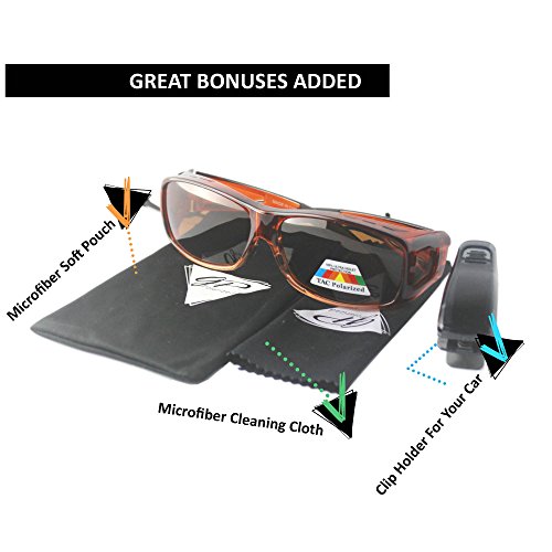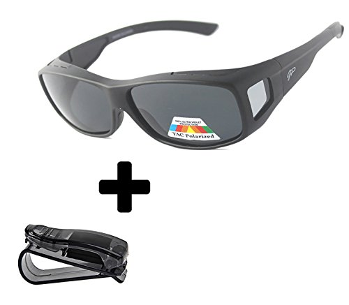 • FIT ON TOP OF REGULAR GLASSES: With the GREAT PICK FITOVER GLASSES SUNGLASSES you can put them over most large prescription glasses and take them off instantly without waiting for tempered lenses to adapt to the light changes; available in four frame choices and two lens choices, also included is a microfiber drawstring pouch, soft cleaning cloth, special car holder clip to keep safe of your sunglasses or eyeglasses in the car .