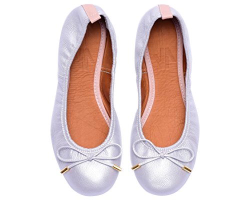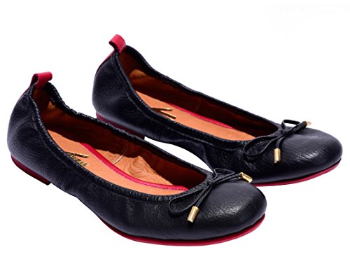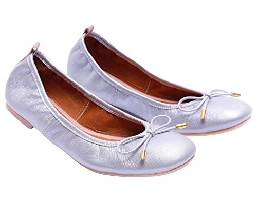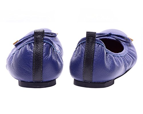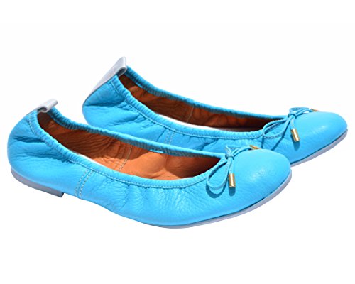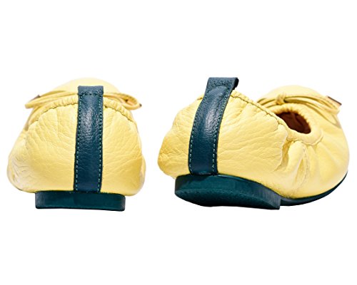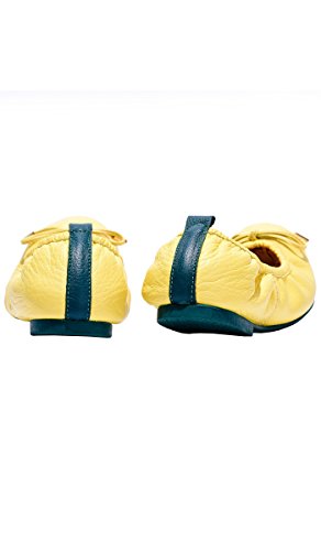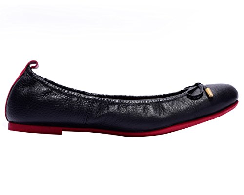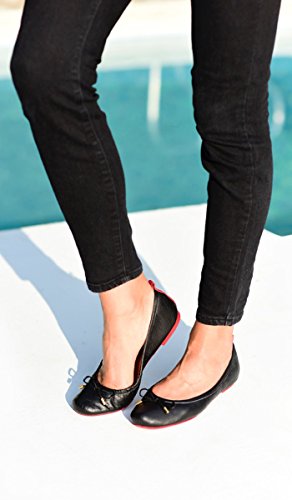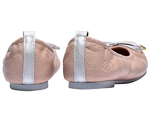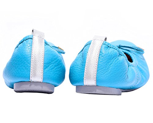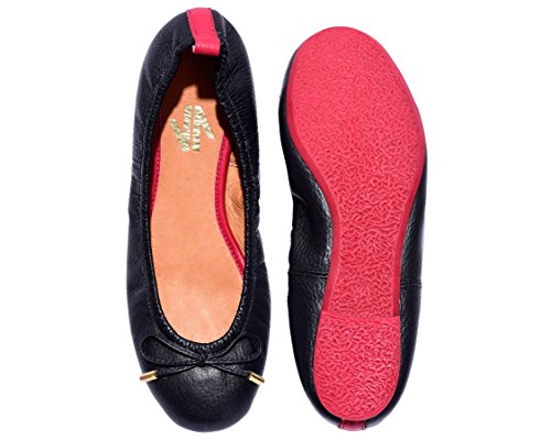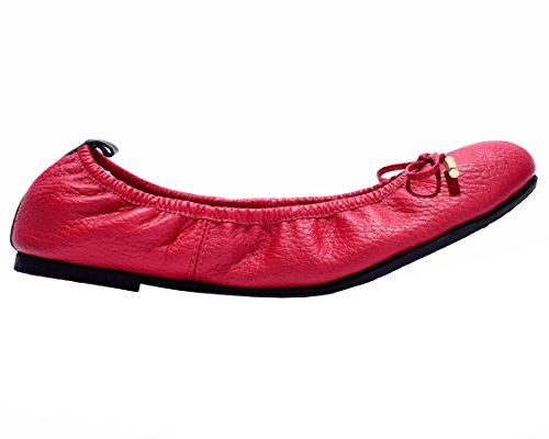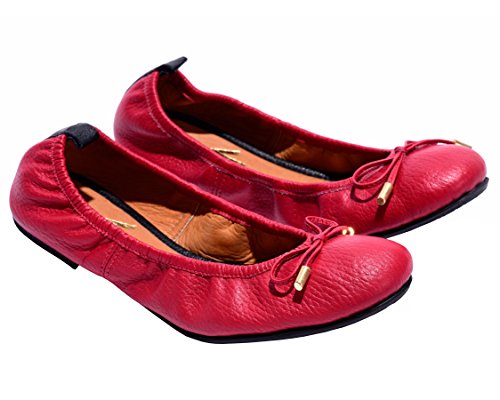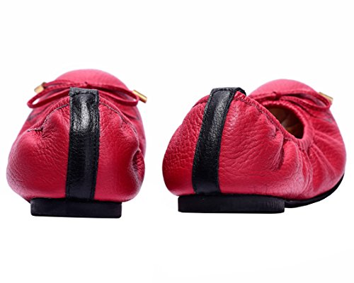 Concerned about finding the perfect leather slip on shoes for women?. Our scrunch flats feature a contrast fun colored sole and same color leather heel extention. These flats with bows will pair with dresses for daytime and jeans on the weekends.