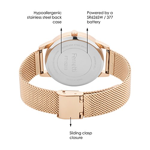 Women's Watches By Ferretti - Rose Gold Stainless Steel Mesh Watch - Make Every Second Count - FT15203
