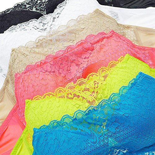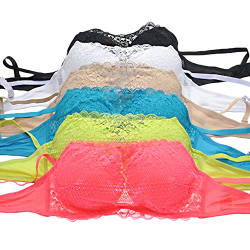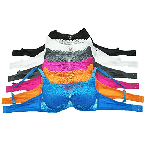 This is the best quality you can find in this price range. Floral lace overlays a contoured underwire bra, creating a look that's perfect for layering with a low-cut top for extra coverage. You get 6 bras in 6 colors so you have one every day, for every outfit. Available from 32B to 40C. 85% Nylon, 15& Spandex. Mashine wash in lingerie bag, tumble dry. For best results, hand wash.Feature