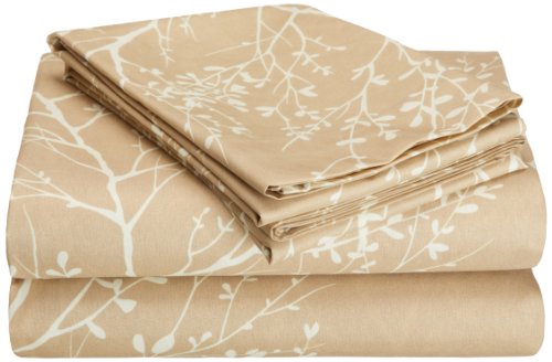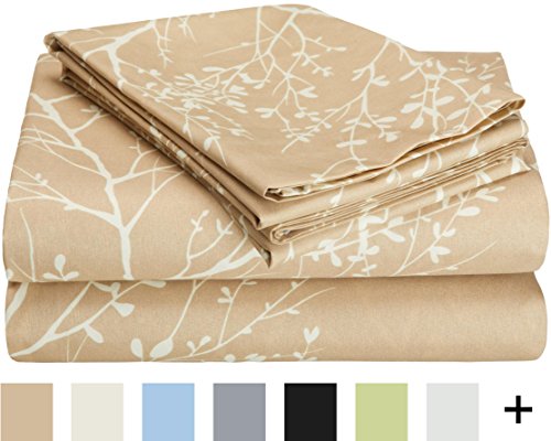 Hotel New York 90GSM Foliage Design Microfiber 4-Piece Pillowcases and Sheets Set, Full, Taupe/Ivory