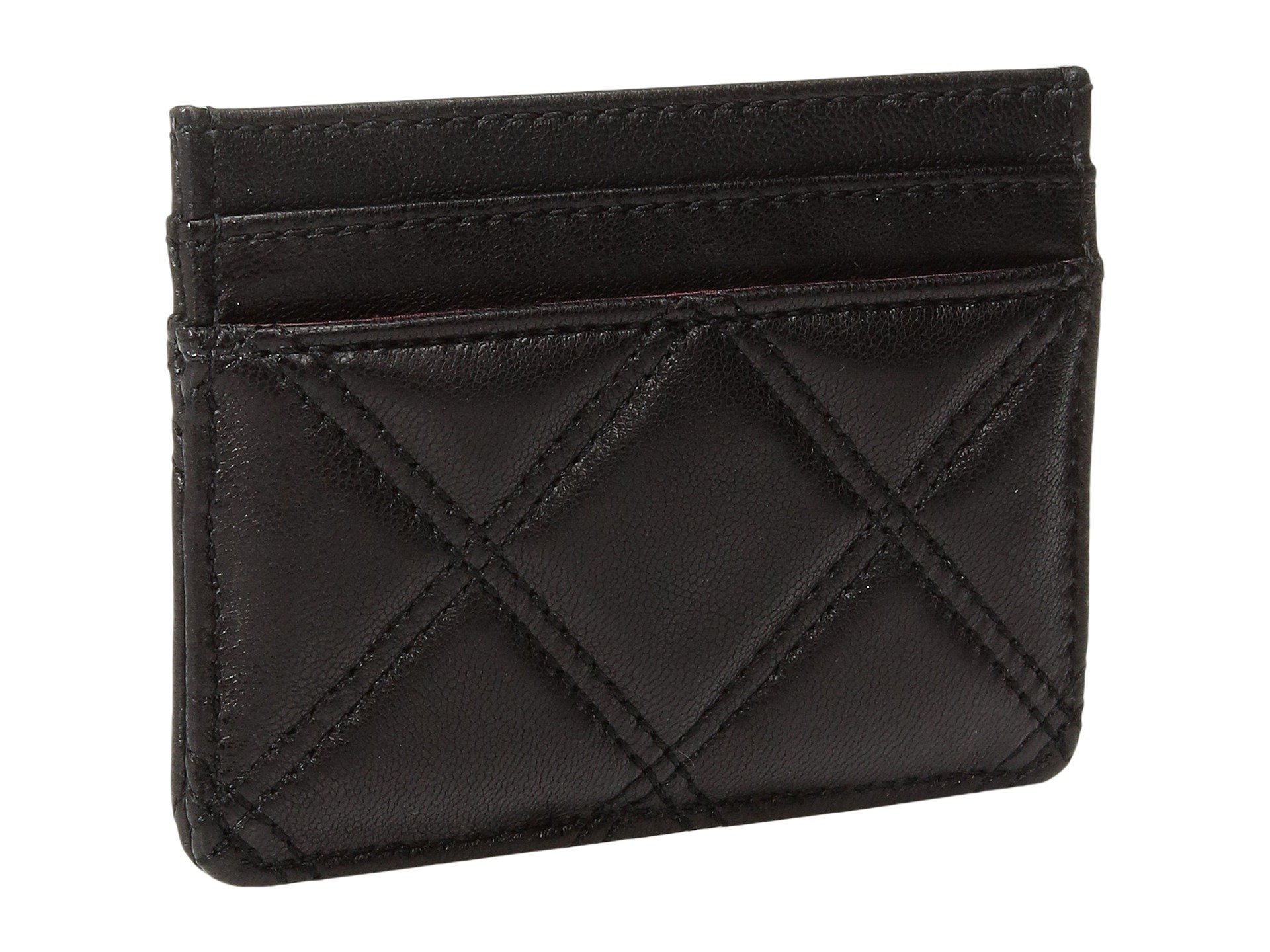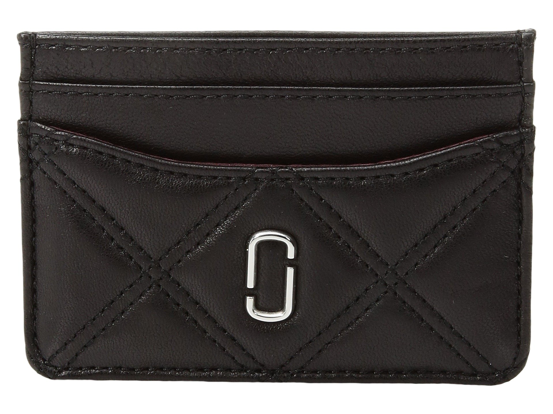 | Product Information SKU: #8916482Flash your style while flashing your credentials carrying the Marc Jacobs? Double J Matelasse Card Case. Card holder made of leather. Tonal stitching in a checkered print adorned throughout.Brand name Double J logo hardware in a golden sheen featured at front. Features four credit card slots and single slide pocket for easy storage.Imported. This item may ship with an attached security tag. Merchandise returned without the original security tag attached or a damaged tag may not qualify for a refund.Measurements: Bottom Width: 4 in Depth: 1?4 in Height: 2 3?4 in Weight: 1 oz |