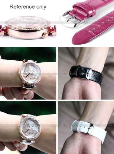 Round watch dial with crystal & butterfly pattern design. Durable stainless steel back. High quality and comfortable genuine leather band.
