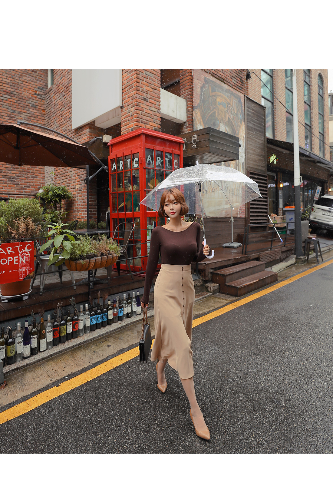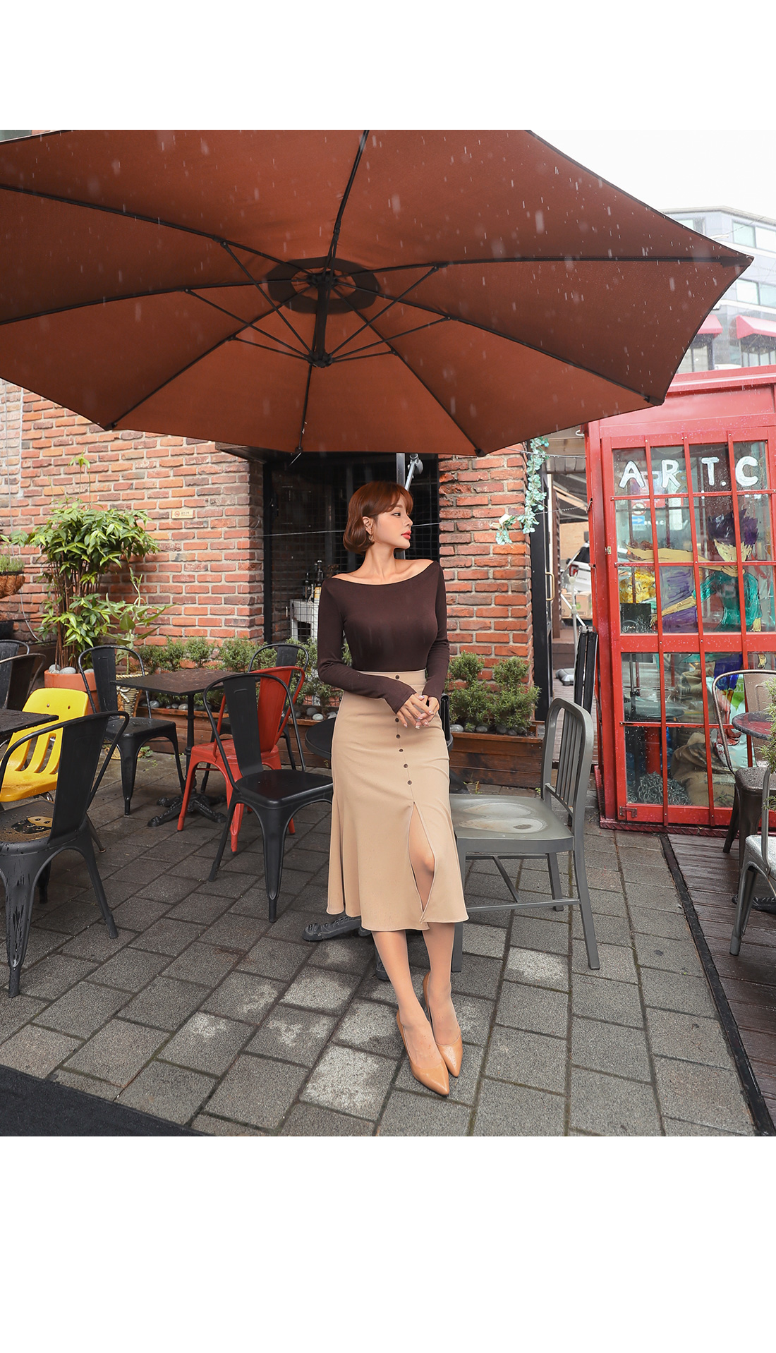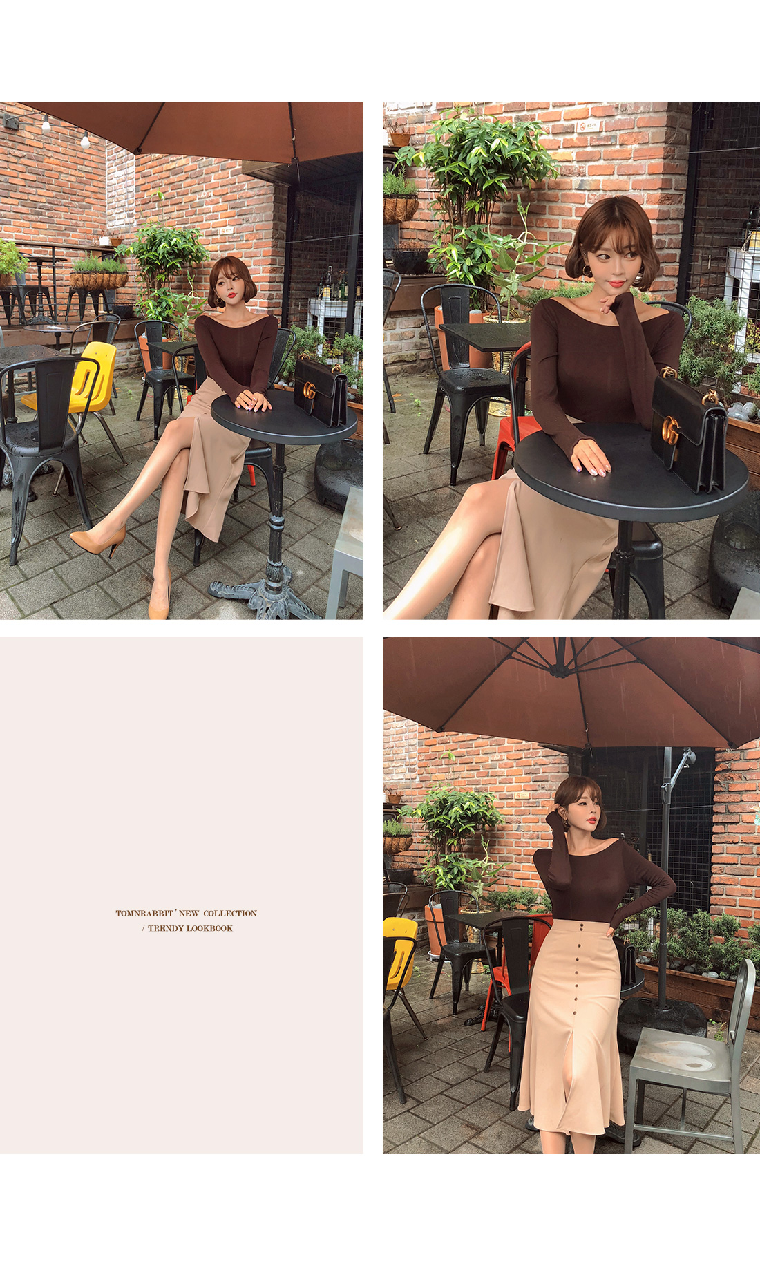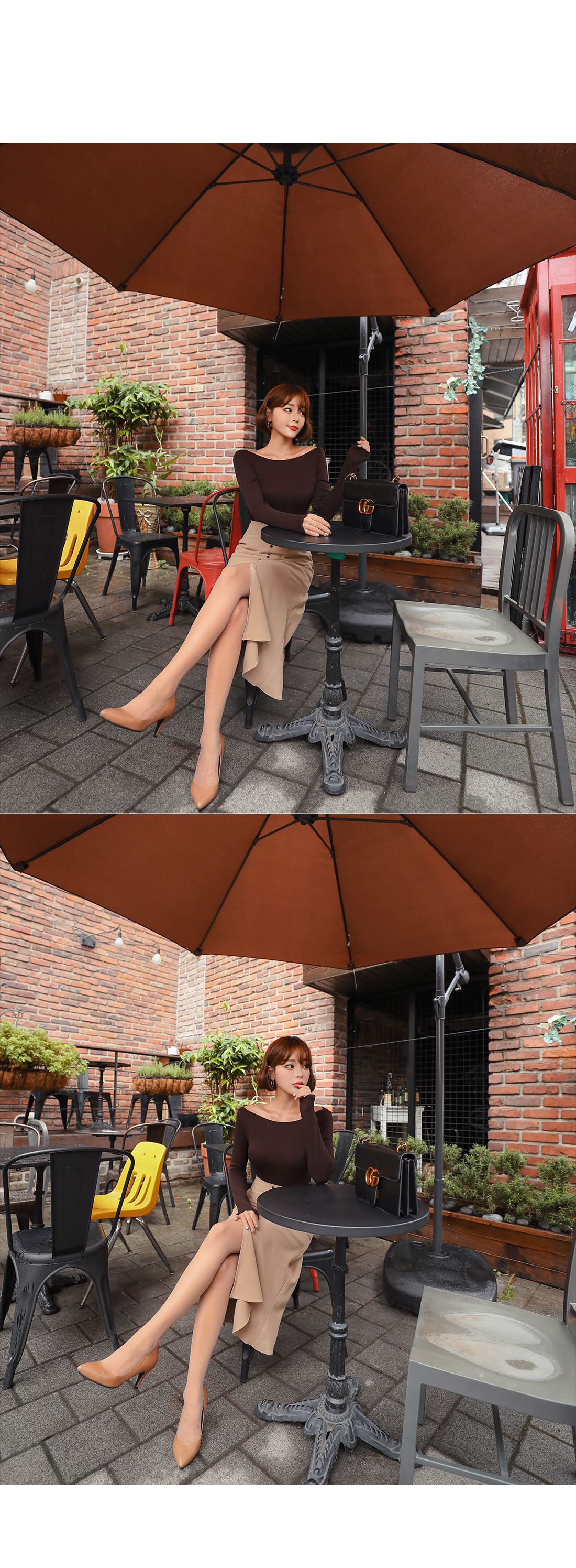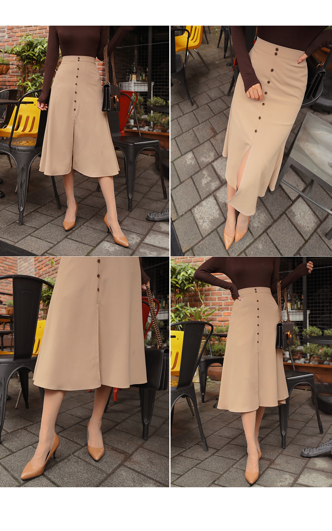 프론트 밑단에 깊은 슬릿 디테일을 주어