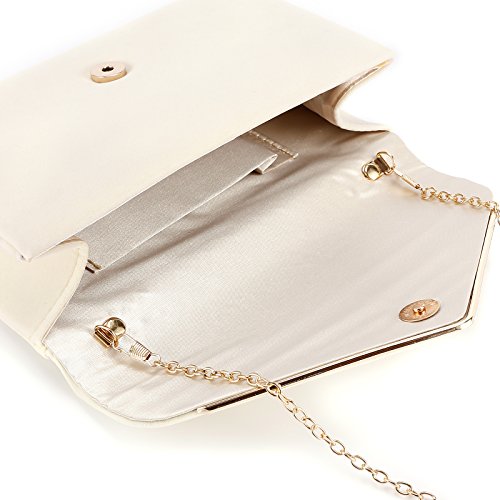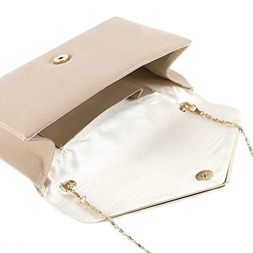 Product Description Over flap with gold metal edge detail, which is secured with magnetic press stud.Fastening,Leading to the main compartment which is fully lined with a zipped security pocket to the back wall.Comes with attachable long gold shoulder strap.Synthetic Lining 0