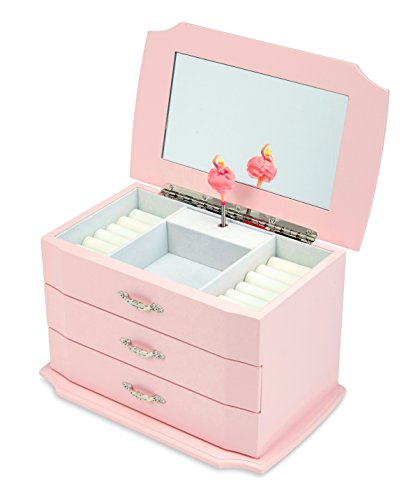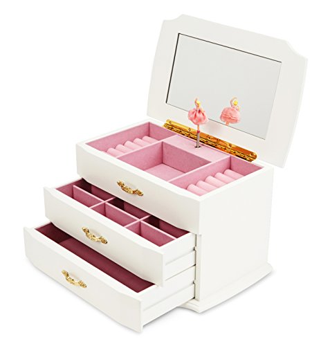BEAUTIFUL MELODY - Upon opening top lid, this classy wooden jewelry box plays the tune "Swan Lake" while the delightful ballerina twirls to its harmonious tune.