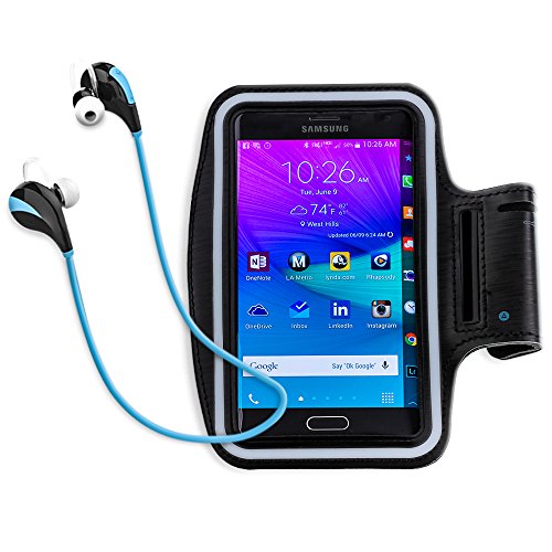 TunePhonik Bluetooth Stereo Headphones In-ear Wireless Headset [Black/Blue] And Armband Combo Pack