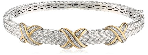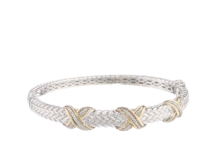 Sterling Silver and 14k Yellow Gold Triple X Design Diamond Textured Bangle Bracelet (.18 cttw)