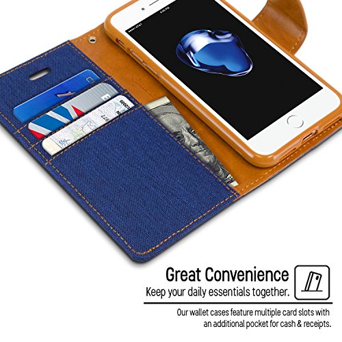 -. Binding : Wireless Phone Accessory -. Brand : GOOSPERY -. Feature : One-of-a-Kind Fabric Case with multiple credit/ID card slots and a pocket for bills/receipts to eliminate the need for a separate wallet. / Cover made with High Quality Canvas Fabric, giving it a designer-made look; lined with Premium Quality Soft Synthetic Leather. Inner casing made with Premium Quality TPU to resist damage from accidental drops. / Stylish yet functional design; converts to a media stand with a magnet clasp for easy open with secure hold when closed. (The magnet does NOT affect the reception signal or any functions of the device.) / Earpiece cut-out for conversing with the cover closed. Designed and manufactactured with precise cut-outs & mold; perfect fit for your device. / Compatible with ONLY Apple iPHONE 7 (This is NOT for iPhone 7 Plus / iPhone 7 Pro). -. Label : GOOSPERY -. Manufacturer : GOOSPERY -. PackageQuantity : 1 -. ProductGroup : Wireless -. ProductTypeName : WIRELESS_ACCESSORY -. Publisher : GOOSPERY -. Studio : GOOSPERY -. Title : iPhone 7 Case, [Drop Protection] GOOSPERY® Canvas Diary [Denim Material] Wallet Case [ID Card / Cash Slot] with Stand Flip Diary Cover w/ TPU Casing for Apple iPhone 7 (2016)
