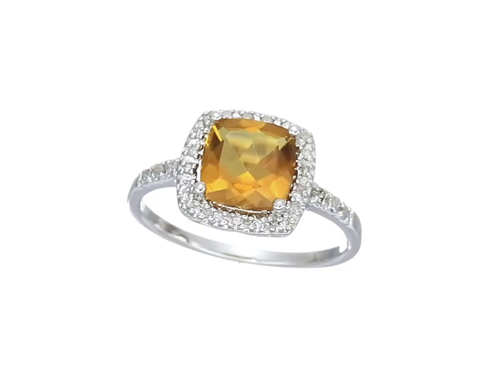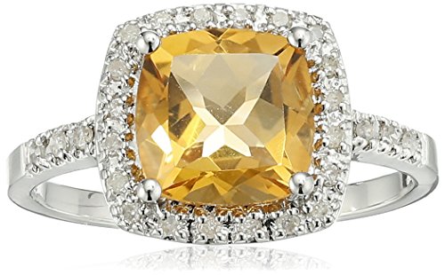 Sterling Silver Cushion Citrine Diamond Ring (1/10 cttw, I-J Color, I2-I3 Clarity), Size 8