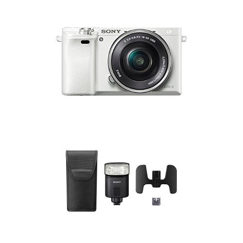 Sony Alpha a6000 Mirrorless Digital Camera with 16-50mm Power Zoom Lens (White) with Flash Bundle
