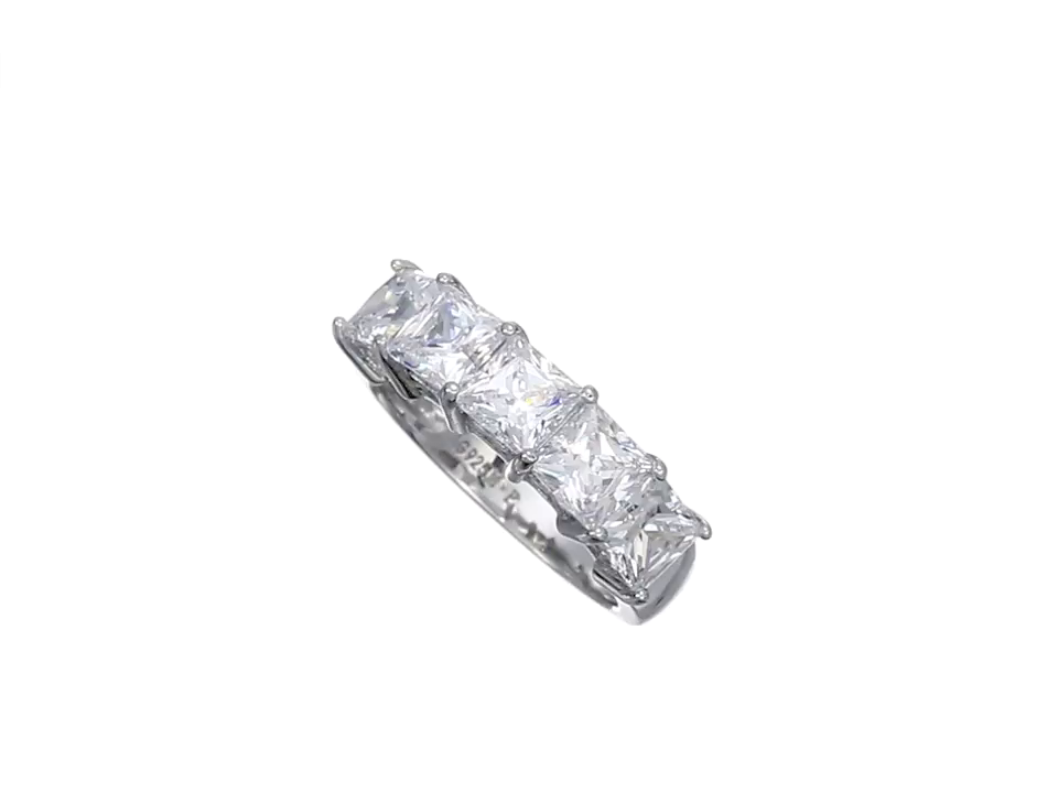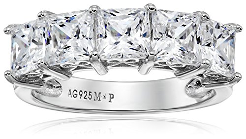Platinum-Plated Sterling Silver Swarovski Zirconia Princess-Cut 5 Stone Ring (3 cttw), Size 6