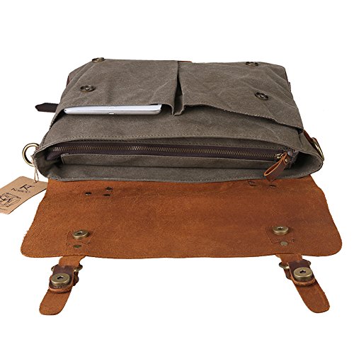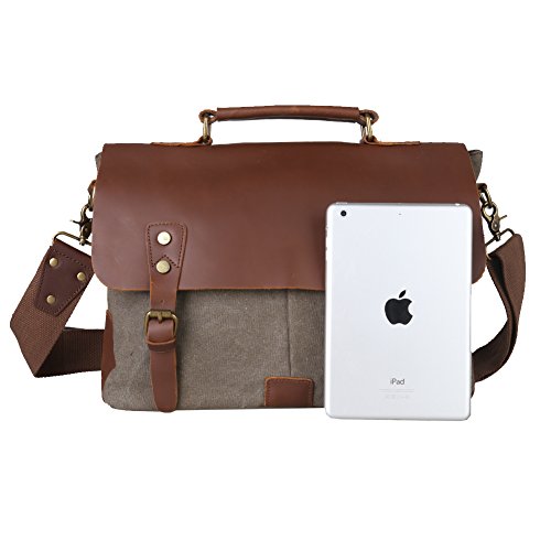 -. Brand : Kattee -. Department : men -. Feature : Top Quality Canvas Bag with Genuine Cow Leather Trim / Flapover design with buckle flap and magnetic closures is great for quick-access items / Leather top handle; Thicken shoulder straps which is adjustable with a buckle, antique finish brass metal buckles / Interior zip, wall and cell phone pockets and 2 large front pockets with strap & quick snap buckles / Large capacity. You can take Tablet PC(up to 14"), A4 magazine, portable textbooks, clothing, wallet, phone to this leather satchel bag -. Label : Kattee -. Manufacturer : Kattee -. MPN : XZ416 -. PackageQuantity : 1 -. PartNumber : XZ416 -. ProductGroup : Sports -. ProductTypeName : OUTDOOR_RECREATION_PRODUCT -. Publisher : Kattee -. Size : Medium -. Studio : Kattee -. Title : Kattee Vintage Canvas + Real Leather Messenger Bag Tote, Fit 14" Laptop