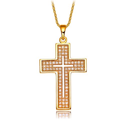 -. Title : NEEMODA "Faith of Love" Hand-Inlaid AAA Cubic Zirconia Cross Necklace Triple Gold Plated with Deluxe Box