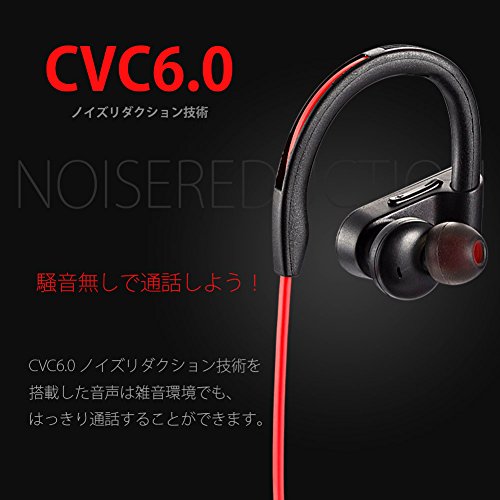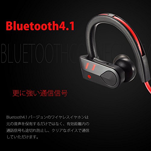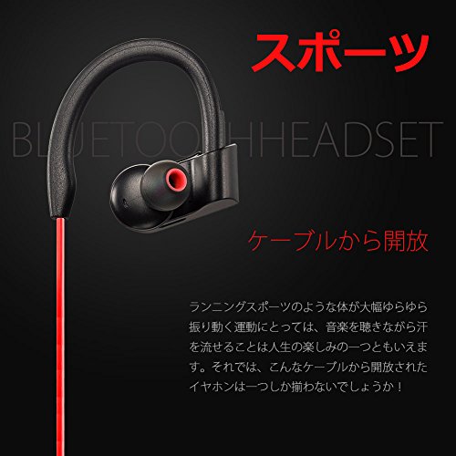 Bluetooth V4.0 In-ear Headset with Mic Wireless Earbuds Rechargeable Sports Headphones Noise cancelling Ergonomic Workout Earphones Hands-free Call for iPhone Samsung HTC, FTK98 (Red) (Red)