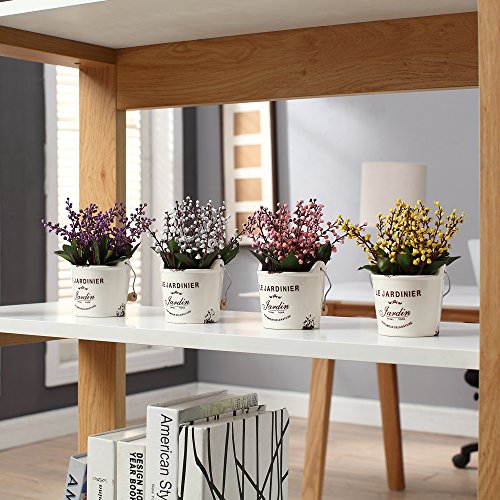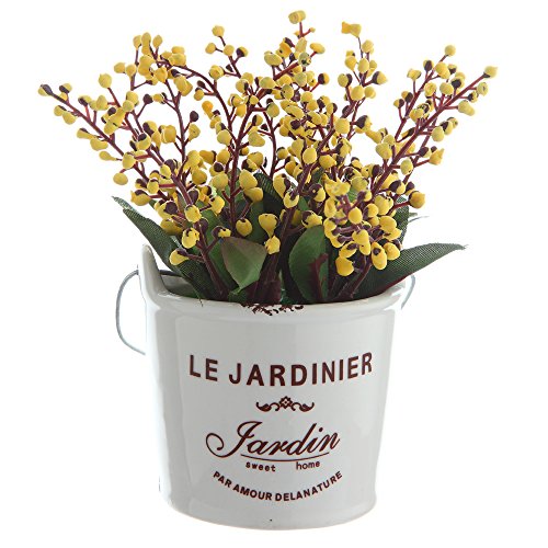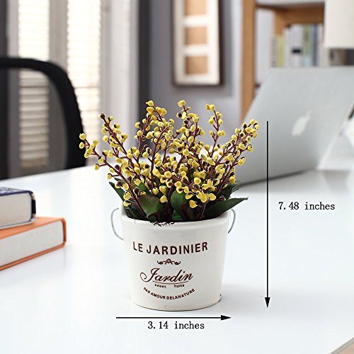 The Most Beautiful Artifical Flowers In The World/Decorative Jequirity Plants In White Porcelain Pot With White Vases/The Best Choice For Home And Office Decration(Yellow)
