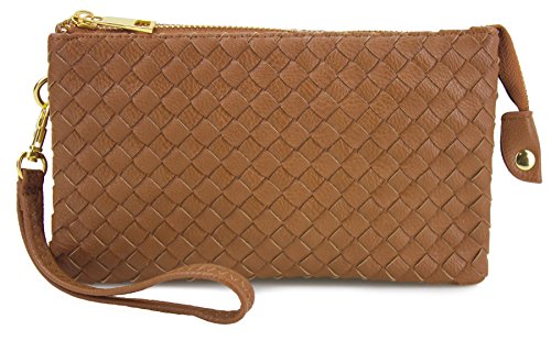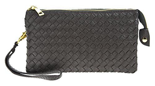 | Proya Collection Classic Soft Woven Leather Wristlet Clutch |