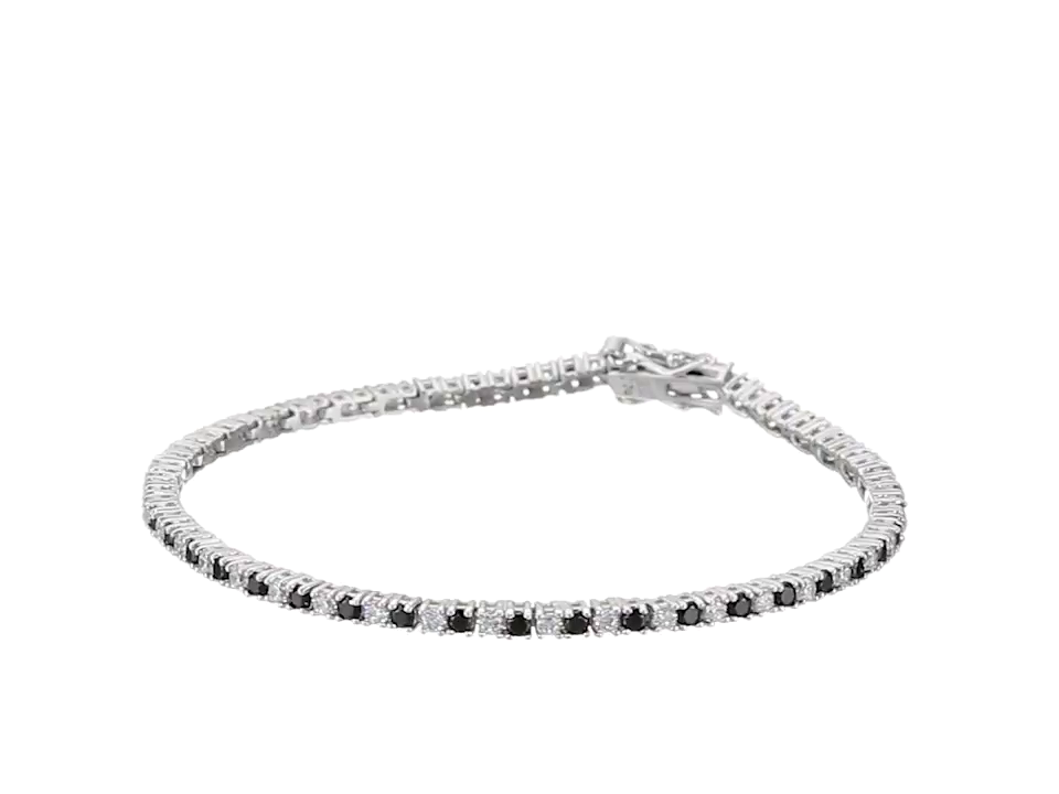 Rhodium Plated Sterling Silver Alternating Round Black and White Cubic Zirconia 2mm Tennis Bracelet, 7.25"