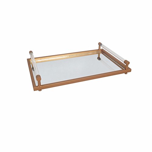 Benzara Metal Finish Mirrored Tray with Acrylic Handles, Clear and Copper