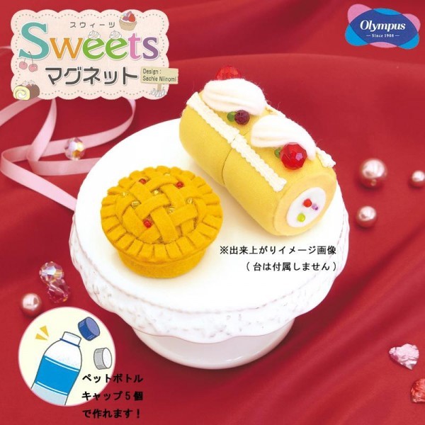 fk094igrjs思わず食べてしまいそう♪かわいいスウィーツがキャップを使って簡単に作れます♪ 製造国:日本 商品サイズ:出来上がりサイズ:フルーツロール約横6×高さ5cm、アップルパイ約横5×高さ3cm 仕様:初級者向 セット内容:布(2種)、キルト綿、フェルト(3種)、ビーズ(7種)、ブレード(1種)、磁石(3枚)、詰め綿、作り方説明書、実物大型紙、ギフトボックス用厚紙 ※サプライヤー直送品 ご注文後2~3営業日後の出荷となります
