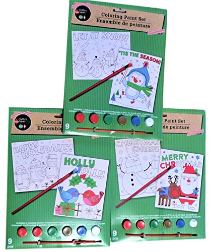 (Crafters Square)/Arts Crafts/Craft Kits/DIRECT FROM USA/Christmas Holiday Gift Coloring Paint Set 9pcs Kit for Kids Bundle of THREE (3) Kits With Two C...