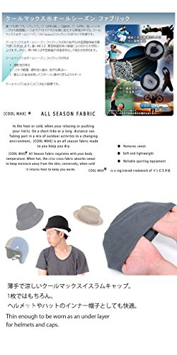 Binding : Apparel Product Description The Cool Max Skull cap, designed by charm is a thin, tight fitting, highly elastic beanie. Cool Max sports material is designed to keep you cool and dry as it facilitates the tranposration and evaporation of sweat away from the skin and releases it into the air. By accelerating the removal of sweat from the skin it leaves the wearer drier compared to not wearing the skull cap beanie. By being thin and light weight it is suitable for use under other headware such as helmets and caps. The sweat removal properties of the hat will continue to work, increasing comfort for the wearer. As the beanie is designed to be streatched it remains opaque even at its limits of elasticity. Made in Japan. 0
