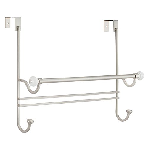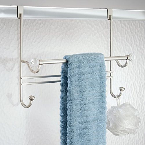 InterDesign York Over Shower Door Towel Rack with Hooks for Bathroom Storage-Satin/White Osd Combo, Satin