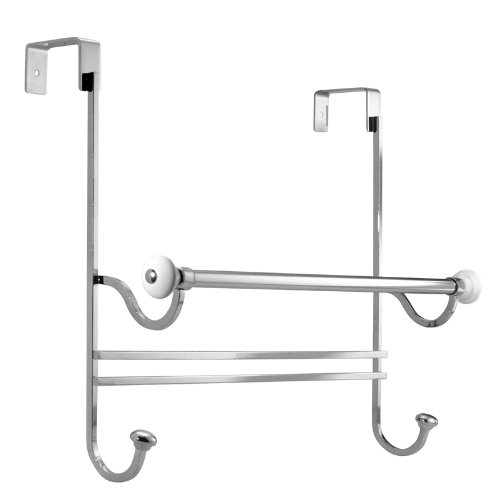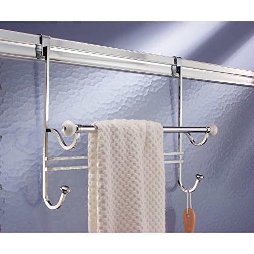 InterDesign York Over Shower Door Towel Bar Rack with Hooks for Bathroom - White/Chrome