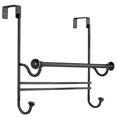 InterDesign York Over Shower Door Towel Rack with Hooks for Bathroom Storage-Matte/Black Osd Combo, Matte Black