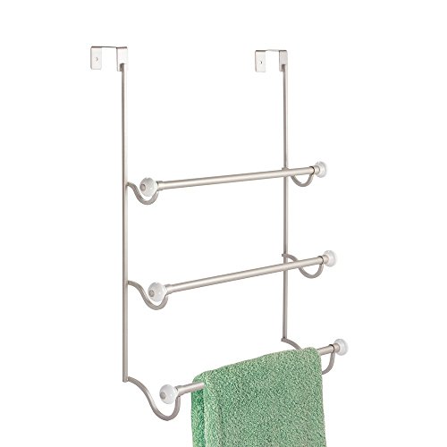 InterDesign York - Over-The-Shower-Door 3-Bar Towel Rack - Satin/White - 4.75 x 17.75 x 22.5 inches