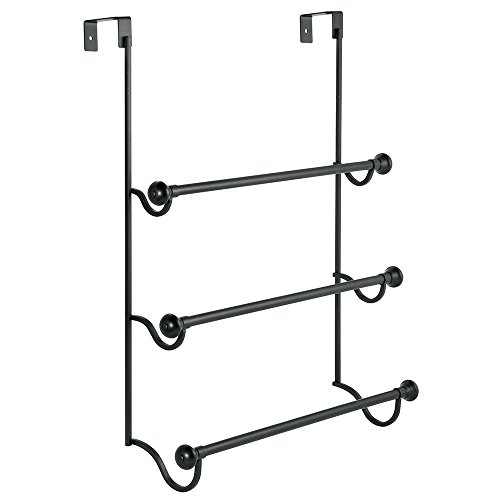 InterDesign York - Over-The-Shower-Door 3-Bar Towel Rack - Matte Black - 4.75 x 17.75 x 22.5 inches