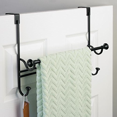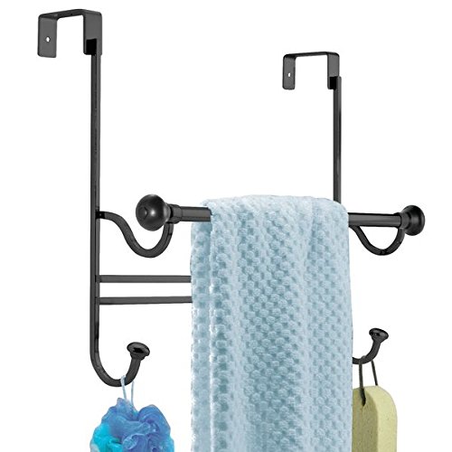InterDesign York Over the Bathroom Shower Door Bath Towel Bar with Hooks - Bronze