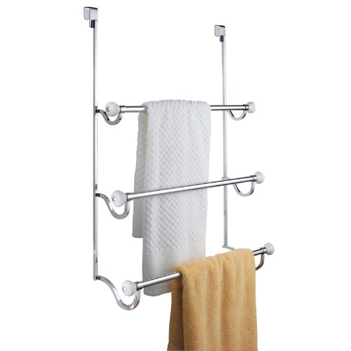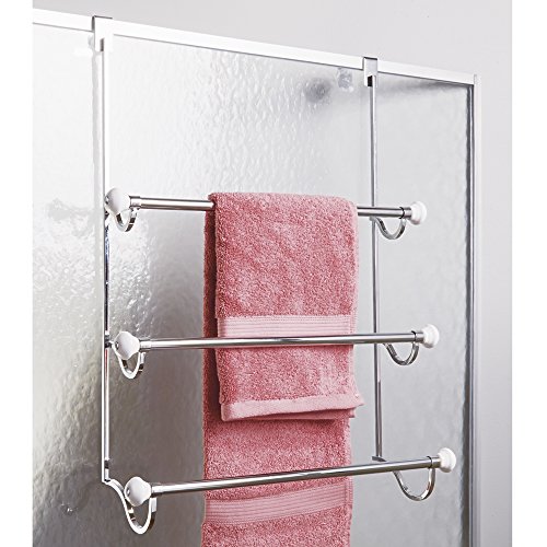 InterDesign York - Over-the-Shower-Door 3-Bar Towel Rack - White/Chrome - 4.75 x 17.75 x 22.5 inches