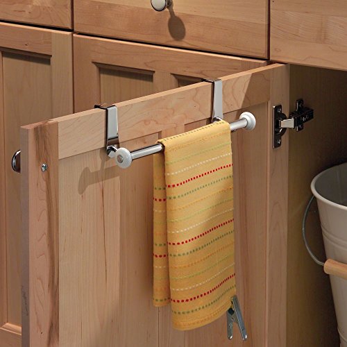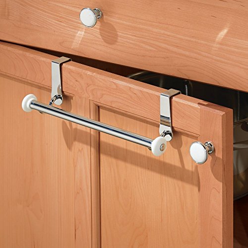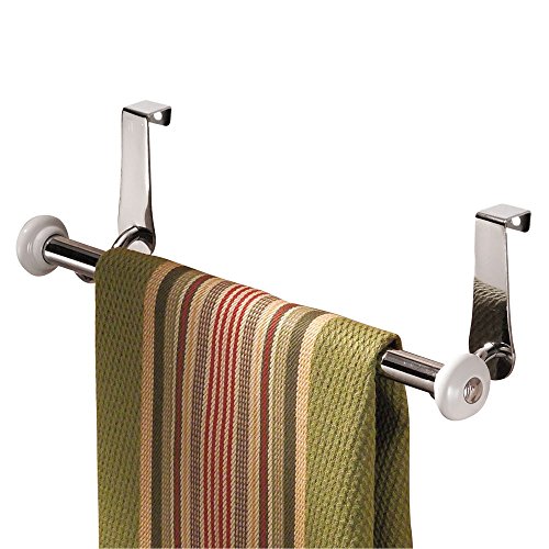 InterDesign York Over-the-Cabinet Kitchen Dish Towel Bar Holder - White/Chrome