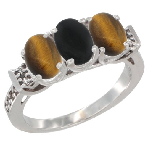 -. Binding : Jewelry -. Brand : Silver City Jewelry -. Department : womens -. Feature : Naturally-vibrant, superior quality color gemstone / High Quality Genuine Diamond Accents / 14K Solid Gold / Made in the USA / Stone arrangement may be requested -. ProductGroup : Jewelry -. ProductTypeName : FASHIONRING -. Title : 14K White Gold Natural Black Onyx & Tiger Eye Sides Ring 3-Stone Oval 7x5 mm Diamond Accent, sizes 5 - 10