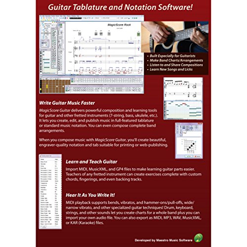 Extensive tools for creating quality music notation for guitar and other instruments. MIDI playback and editing lets you be certain your guitar tabs sound great