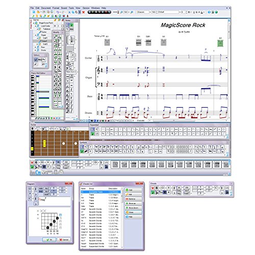 Print entire compositions or individual instrumental parts. Notation tools and sounds for drums, keyboards, strings, woodwind, and other sounds let you create charts for a whole band