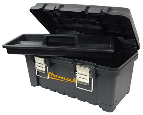 Homak Plastic Tool Box with Metal Latches, 16-Inch, Black, BK00216001