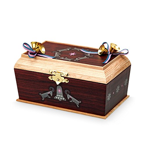 Turn key on back and open lid to see tiny Olaf figure pirouette