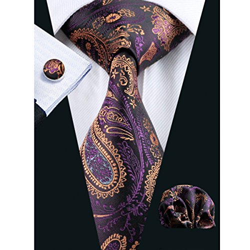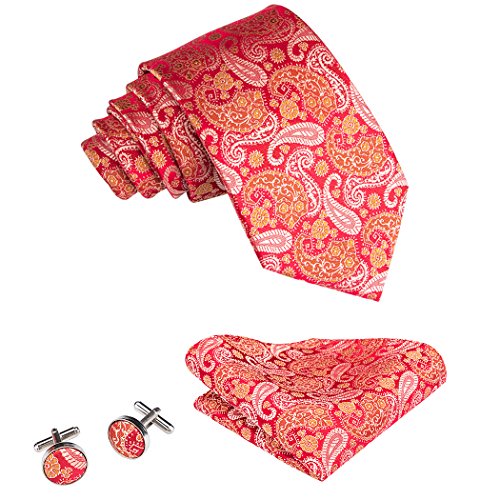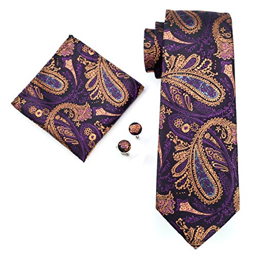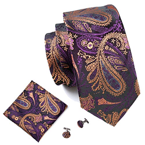 Hi-Tie Retro Paisley Tie Set mit Hanky ??Manschettenkn?pfe Hochzeit Business
