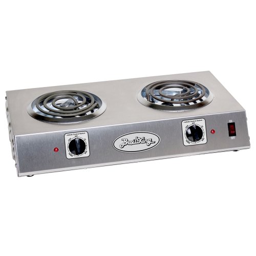 Industrial rated range with sturdy housing allows you to boil, simmer, saute, etc. various foods on both burners. Heavy duty stainless construction, commercial quality.