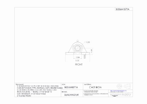Sealmaster NP-16 Pillow Block Ball Bearing, Non-Expansion Type, Normal-Duty, Regreasable, Setscrew Locking Collar, Felt Seals, Cast Iron Housing, 1" Bore, 1-7/16" Base to Center Height, 4-1/8" Bolt Hole Spacing Width