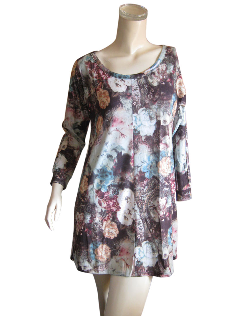 ワンピース チュニック チュニックワンピ ばら バラ ローズ 長袖 Aライン 春 秋