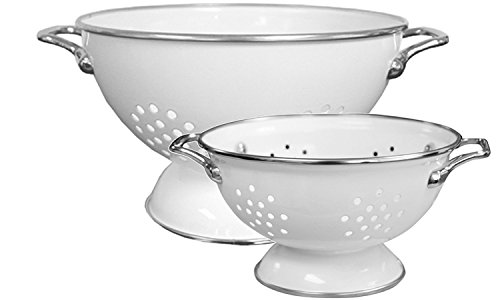 -. Feature : Well Placed Holes For Easy Draining / Stainless Steel Rims and Chrome Handles / Set Comes with 5 Quart and 1.5 Quart Matching Colanders / Hand Wash Recommended