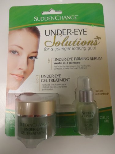 Suddenchance. Under-Eye. Solutions for a younger looking you ! Under-Eye Firming Serun. Works in 3 minutes. Reduces the Appearance of Dark Circles, Fine Lines, Wrinkles, Craws Feet and Puffiness. Results Guaranteed. Sudden chance Under-Eye Gel Treatment. Sudden chance 3 minute Under-Eye Firming Serum. 23 FL OZ/7 ML