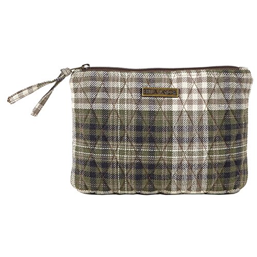 Product Description A preppy yet traditional look, Henley combines patchwork squares in khaki, navy and tan. A perfect pattern for fall (or any season!). The Personal Pouch set is perfect for organizing small essentials like makeup, tissues, pens, gum and more. It comes with 1 large pouch that is 6.25x9x.5" and one small pouch that is 5x7x.5". Both have nickel hardware and zip closure. 0