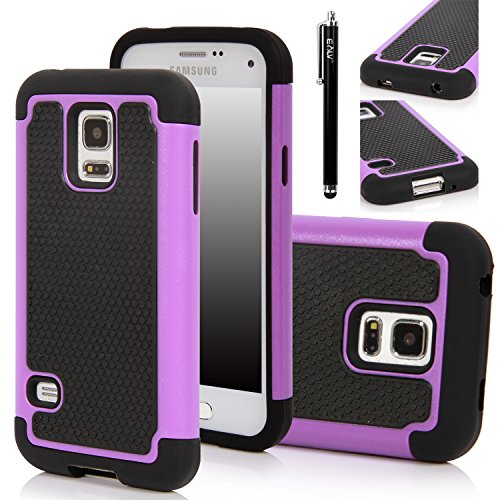 Galaxy S5 MINI Case, E LV Galaxy S5 MINI Case - Shock-Absorption / High Impact Resistant Hybrid Dual Layer Armor Defender Full Body Protective Case Cover for Samsung Galaxy S5 MINI SM-G800 with 1 Stylus and 1 E LV Microfiber Digital Cleaner (Purple)