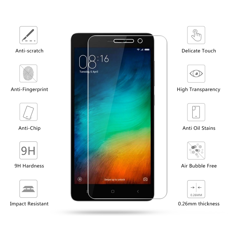 2.5D 0.26mm 9H Premium Tempered Glass Screen Protector For Xiaomi Redmi 3u0026nbsp;/u0026nbsp;3s / 3X / 3S Pro / 3 Prou0026nbsp;Toughened protective film